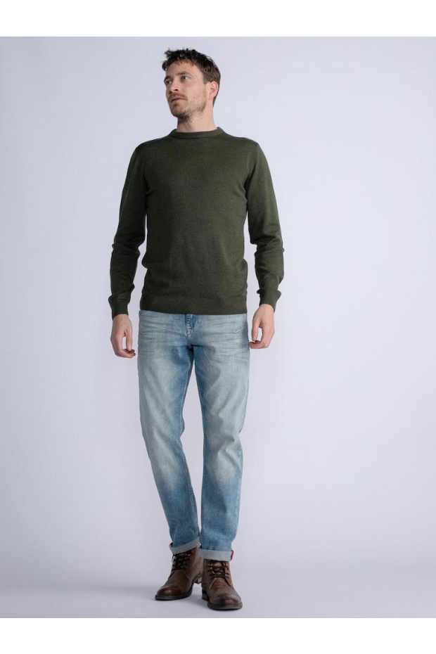 Petrol M-3030-KWR201 Knitwear Round Neck Basic 6092 Hunter Green