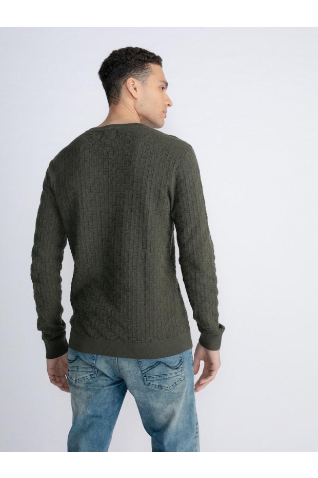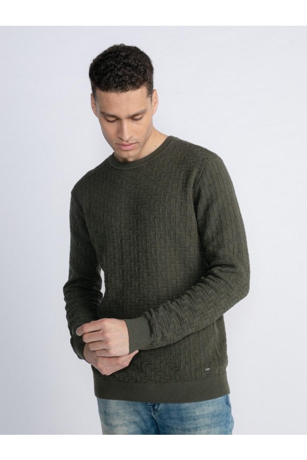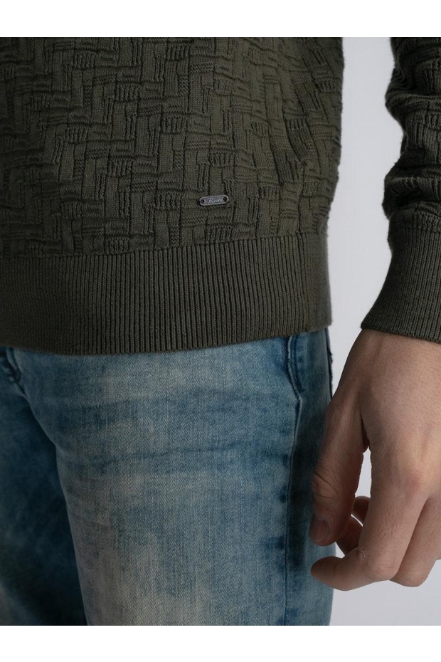 Petrol M-3030-KWR232 Knitwear Round Neck Basic 6092 Hunter Green