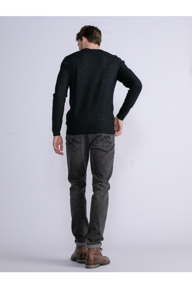 Petrol M-3030-KWR269 Knitwear Round Neck Basic 9091 Dark Black