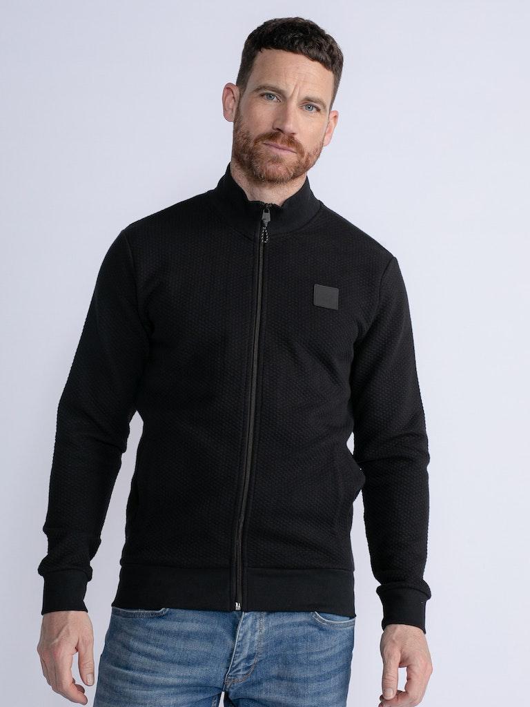 Getailleerd vest met ribstructuur. Dit item heeft een ritssluiting en een subtiel logo embleem op de borst.