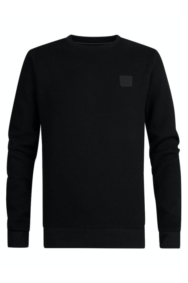 Geribde sweater met subtiel logo embleem op de borst. Deze sweater heeft een ronde hals en geribde boorden.