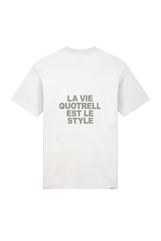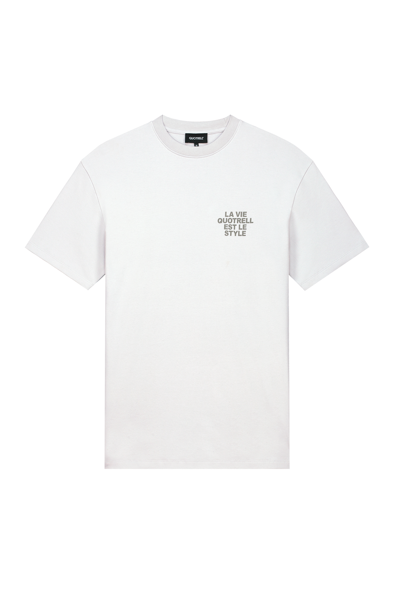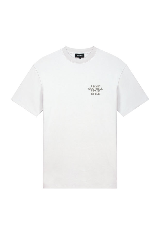 Ontdek de perfecte aanvulling op jouw zomergarderobe met het stijlvolle La Vie T-shirt van Quotrell. Dit lichtgrijze T-shirt, geïnspireerd op de tinten van cement en beton, biedt een unieke mix van comfort en mode. Ideaal voor de moderne man die waarde hecht aan zowel stijl als kwaliteit.