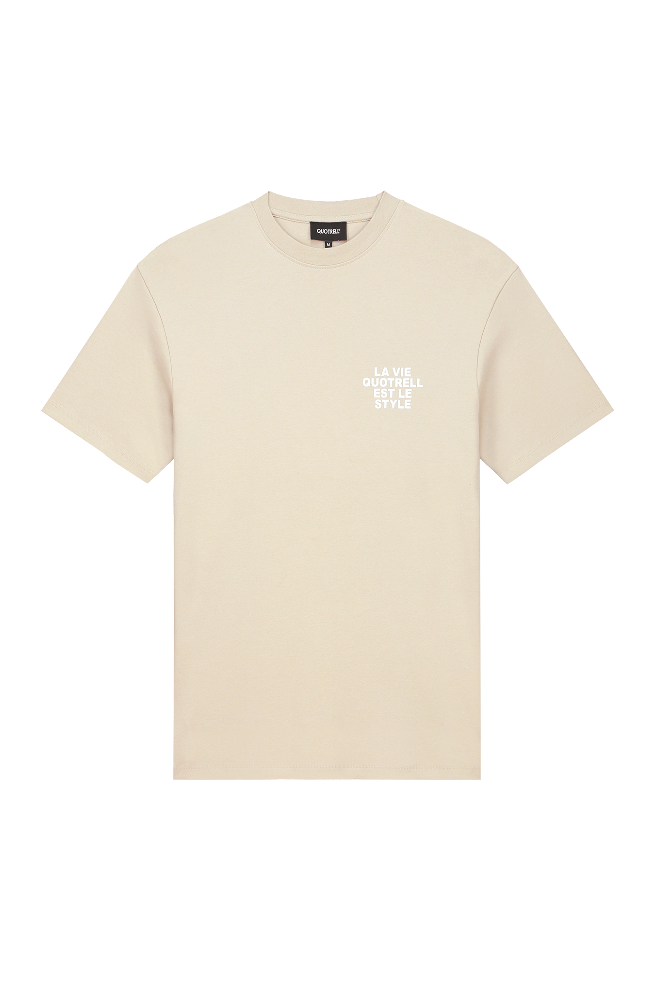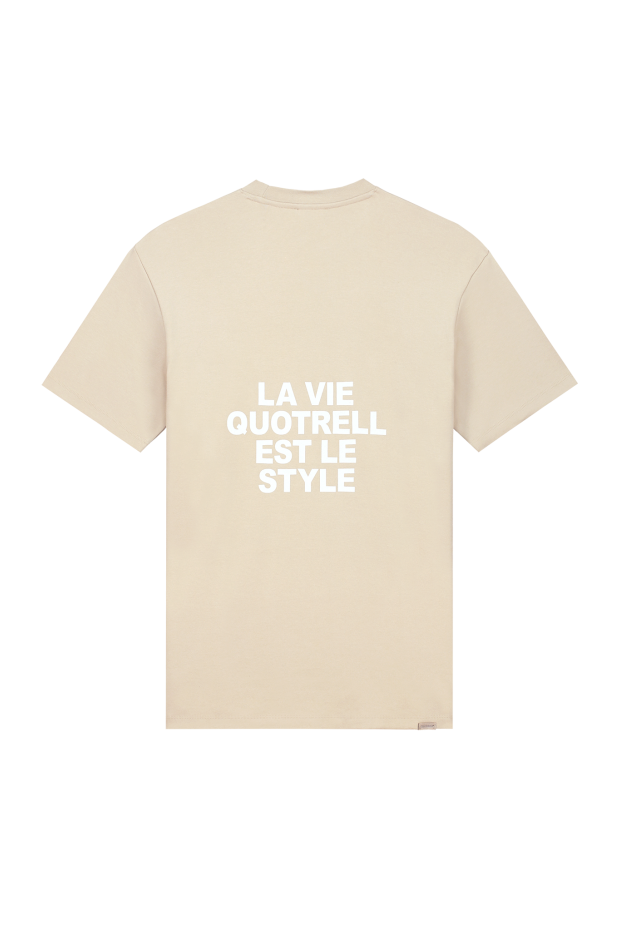 Ontdek de perfecte aanvulling op jouw zomerse garderobe met het stijlvolle La Vie T-shirt van Quotrell. Dit heren T-shirt, uitgevoerd in een subtiele beige kleur, combineert moeiteloos comfort met een trendy design. Ideaal voor de modebewuste man die waarde hecht aan zowel stijl als kwaliteit.