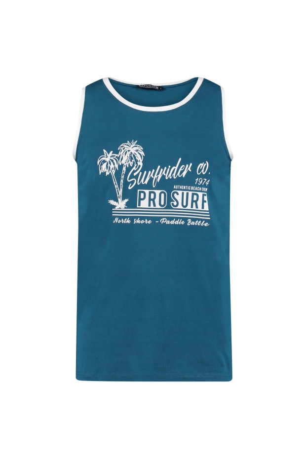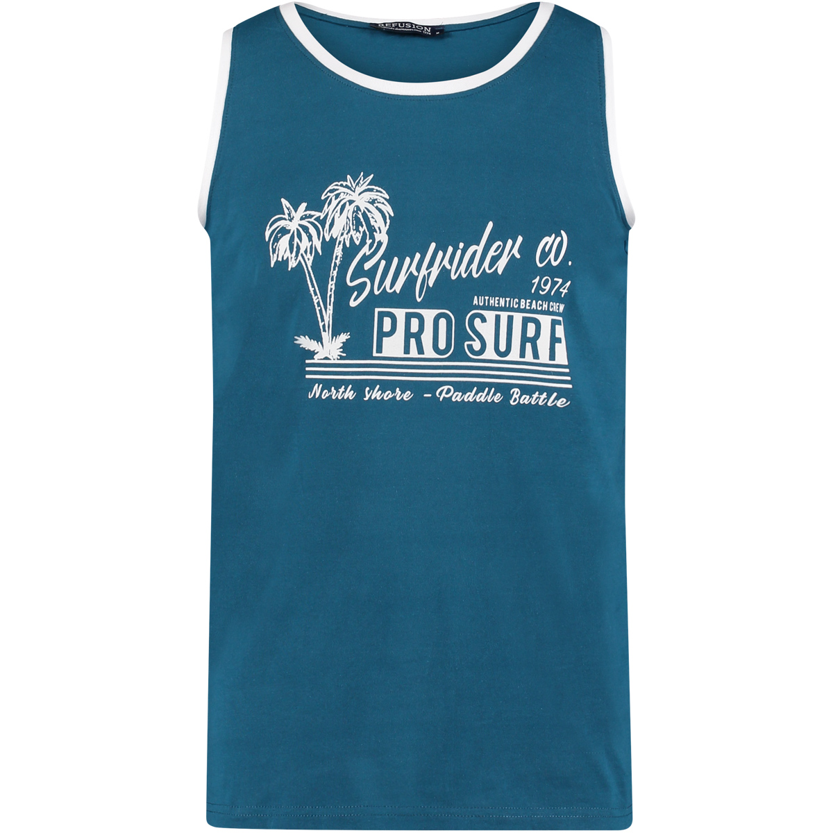 Ervaar de perfecte combinatie van stijl en comfort met onze nieuwste aanwinst: de REFUSION singlet in de kleur groen, geïnspireerd door de diepe zee en afgezet met een stijlvol off-white detail. Speciaal ontworpen voor de moderne man die waarde hecht aan zowel mode als functionaliteit. Dit item is een must-have voor elke zomergarderobe.