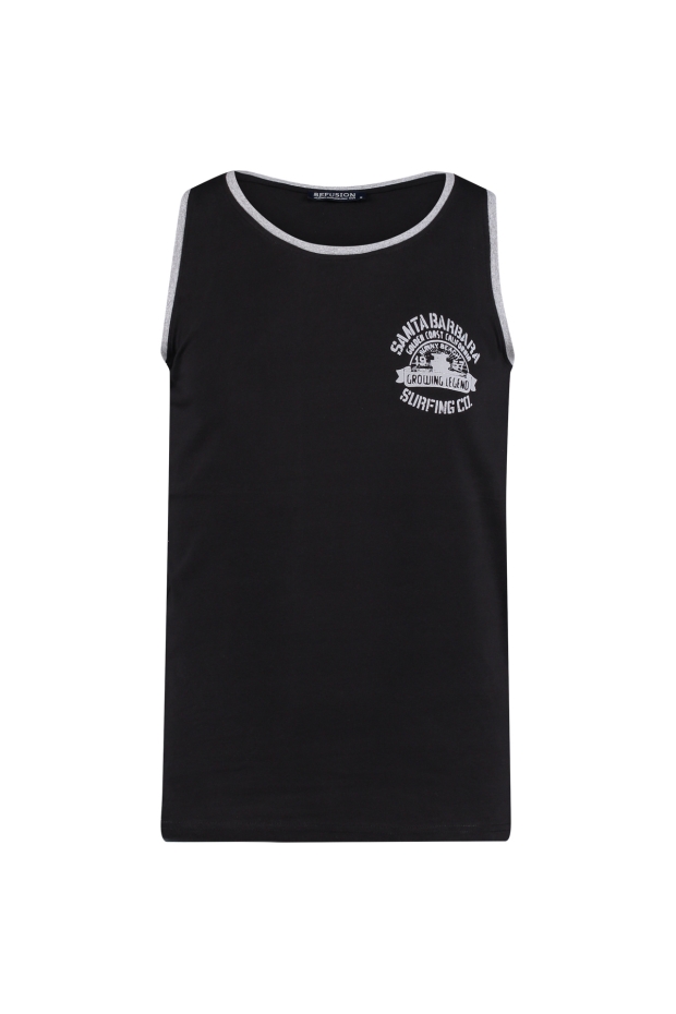 Ervaar de ultieme combinatie van stijl en comfort met onze REFUSION Singlet in het stijlvolle zwart. Perfect voor de zomer, dit item is een must-have voor elke modebewuste man die waarde hecht aan kwaliteit en een tijdloze look.