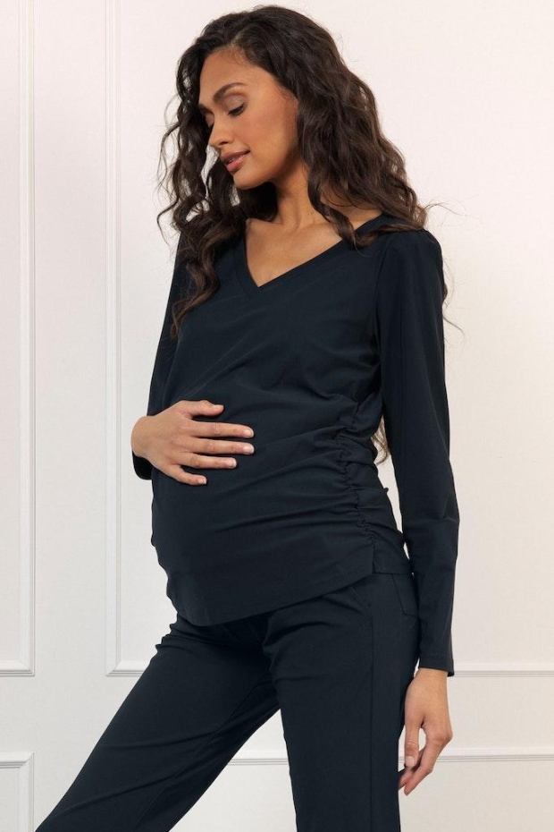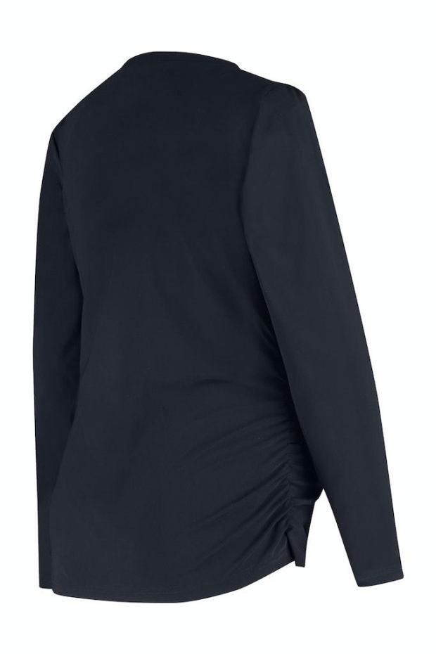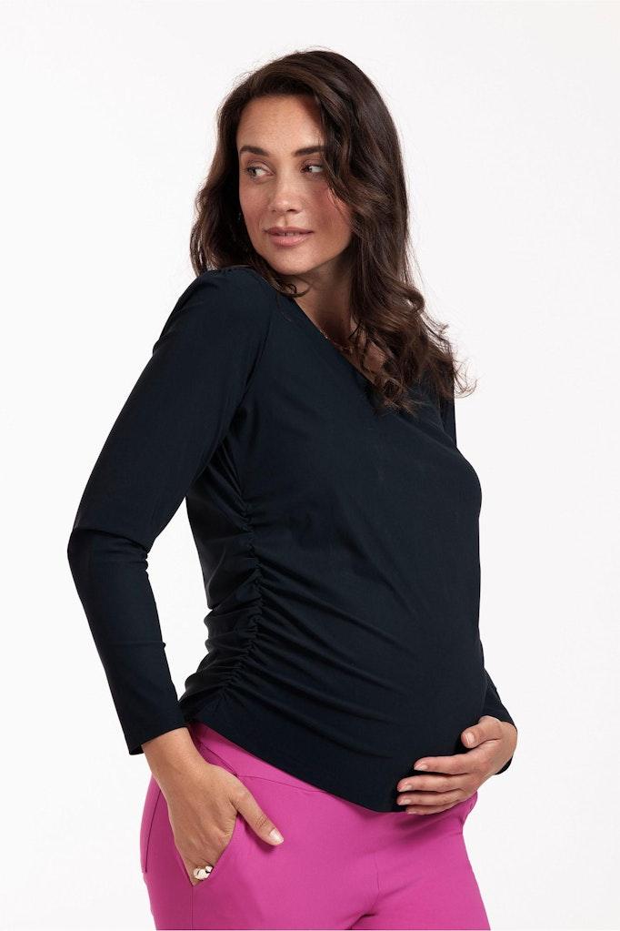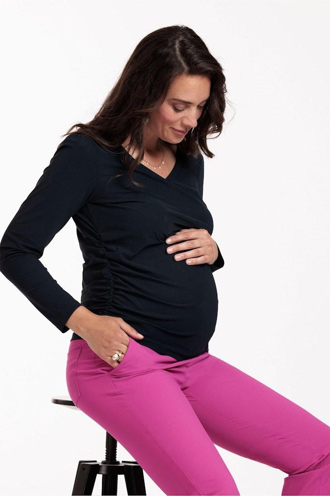 Met het Maternity shirt van Studio Anneloes kom je goed voor de dag tijdens jouw zwangerschap. Dit item met lange mouwen laat jouw baby belly extra mooi uitkomen, vanwege de plooien in de zijnaad. Die ontstaan door het elastiek dat in de zijnaden verwerkt is. Dit blauwe zwangerschapsshirt heeft subtiele pofmouwtjes en een V-hals. Ook als je niet (meer) zwanger bent en je een buikje wilt verdoezelen, kun je dit item goed gebruiken.