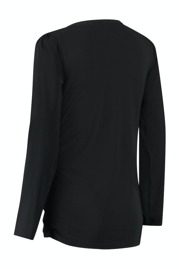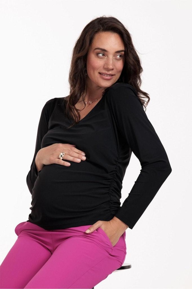 Met het Maternity shirt van Studio Anneloes kom je goed voor de dag tijdens jouw zwangerschap. Dit item met lange mouwen laat jouw baby belly extra mooi uitkomen, vanwege de plooien in de zijnaad. Die ontstaan door het elastiek dat in de zijnaden verwerkt is. Dit zwarte zwangerschapsshirt heeft subtiele pofmouwtjes en een V-hals. Ook als je niet (meer) zwanger bent en je een buikje wilt verdoezelen, kun je dit item goed gebruiken.