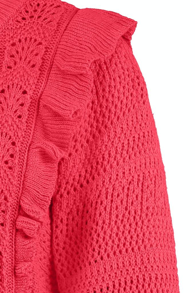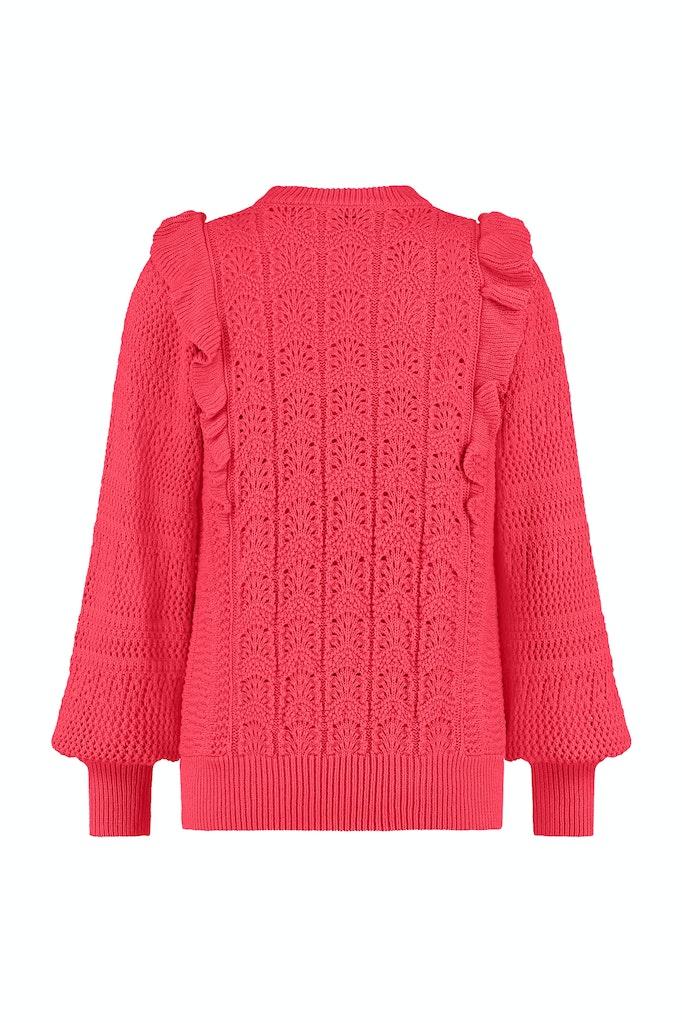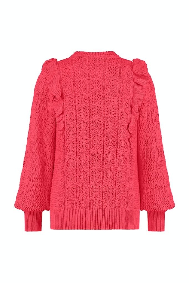 Ontdek de perfecte aanvulling op jouw zomergarderobe met de Lou ruffle pullover van STUDIO ANNELOES. Deze opvallende trui in een levendige fuchsia kleur is een echte blikvanger en biedt een combinatie van stijl en comfort. Ideaal voor de modebewuste vrouw die haar outfit graag een kleurrijke touch geeft.