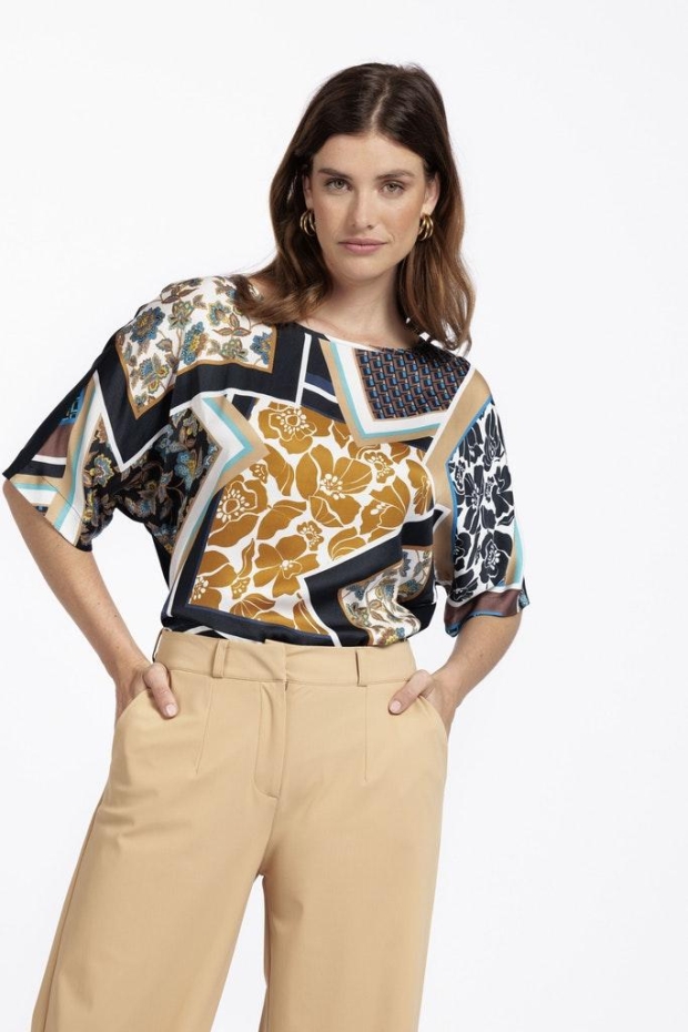 Studio Anneloes Birgit satin patchw. shirt 6965 dark blue/cobalt
