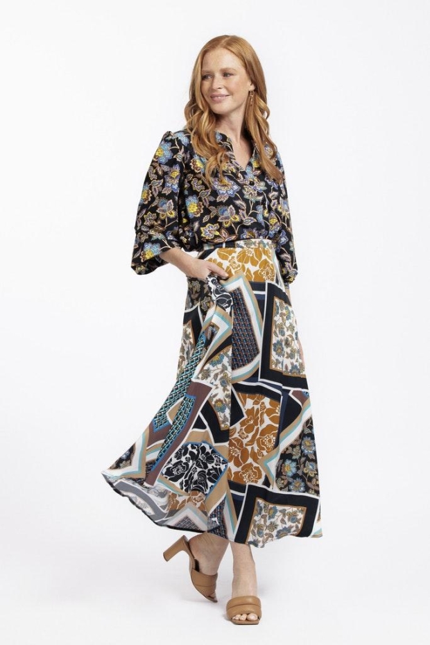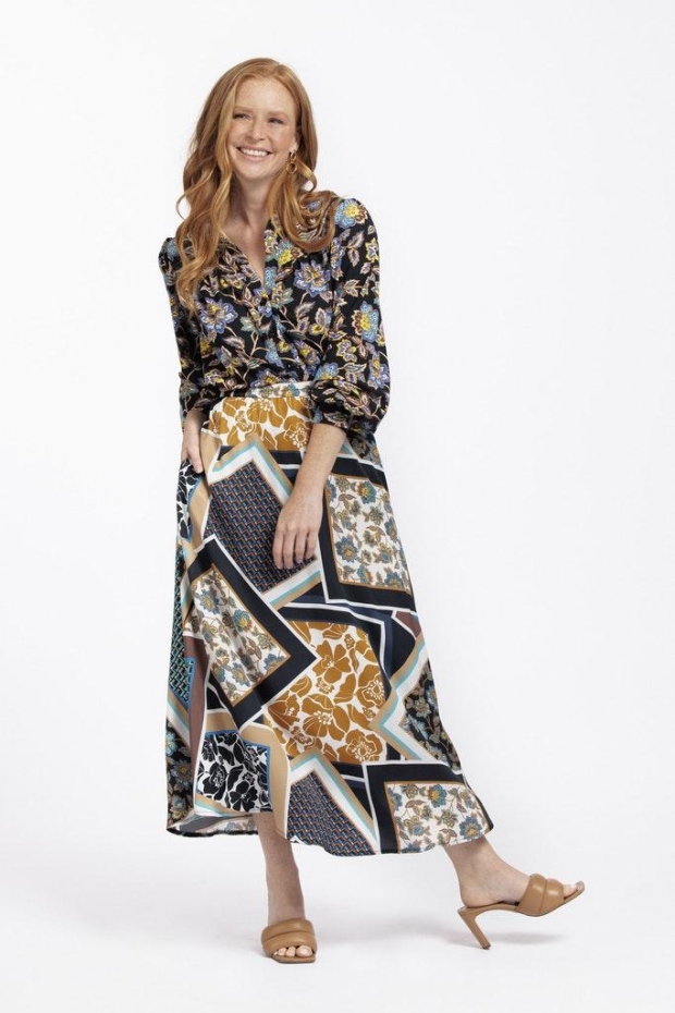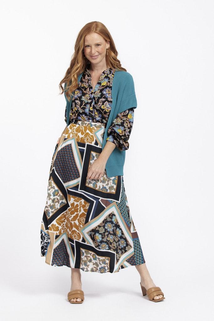 Ontdek de perfecte aanvulling op jouw zomergarderobe met de elegante Jans satin patchwork skirt van STUDIO ANNELOES. Deze prachtige rok, uitgevoerd in een diepe donkerblauwe tint, belichaamt stijl en comfort voor de moderne vrouw. Laat je meenemen door de unieke patchwork details die jouw outfit net dat beetje extra geven.