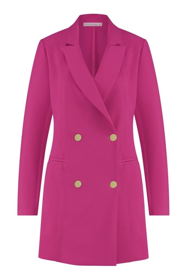 Voeg een vleugje kleur toe aan je garderobe met de opvallende Jazz bonded blazer van STUDIO ANNELOES in het sprankelende fuchsia. Deze blazer combineert stijl met comfort, waardoor het de perfecte keuze is voor zowel formele als informele gelegenheden.