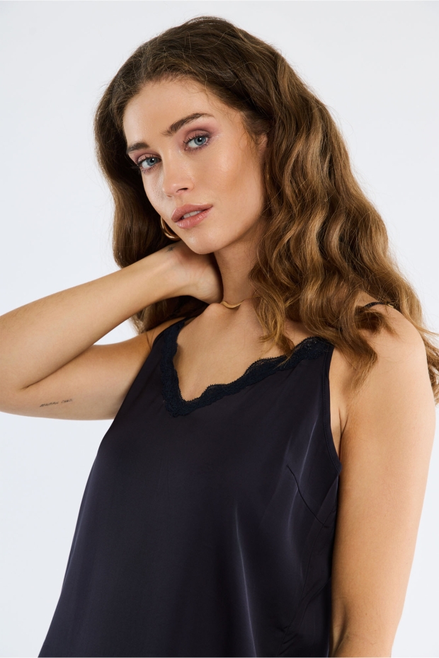 Ontdek de perfecte aanvulling op jouw zomergarderobe met de Vivie lace singlet van STUDIO ANNELOES. Deze elegante top in stijlvol donkerblauw is jouw nieuwe favoriet voor zowel casual als chique gelegenheden. Voel je op en top vrouw in deze prachtige singlet die comfort en stijl naadloos combineert.