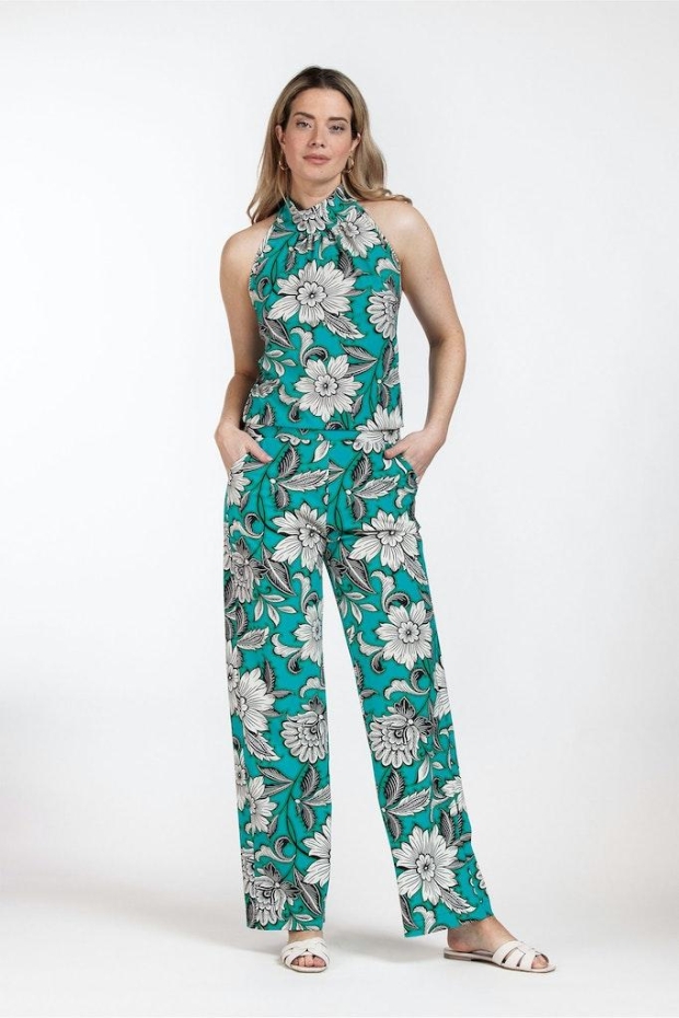 Ontdek de perfecte combinatie van stijl en comfort met de Monica flower jumpsuit van STUDIO ANNELOES. Deze prachtige jumpsuit in een levendige turquoise kleur is jouw ideale partner voor zomerse dagen. Met zijn unieke design en aandacht voor detail, biedt deze jumpsuit een ongeëvenaarde stijl die je zowel overdag als 's avonds kunt dragen.