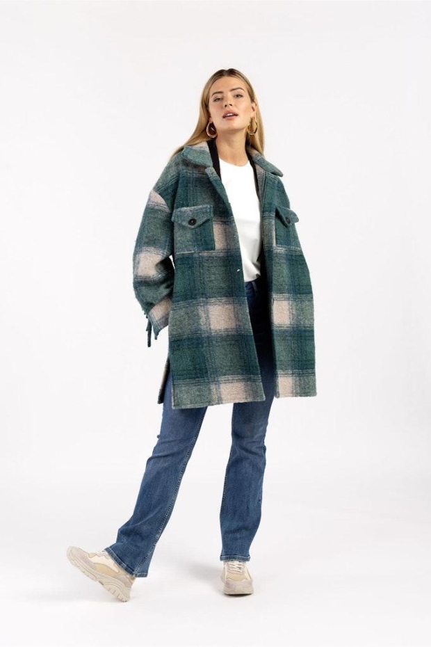 Ontdek de perfecte aanvulling op je wintergarderobe met de Ivy check fringe jacket van STUDIO ANNELOES. Deze stijlvolle damesjas, uitgevoerd in een opvallende groene kleur met off-white accenten, belooft niet alleen warmte tijdens de koudere dagen, maar ook een modieuze uitstraling.