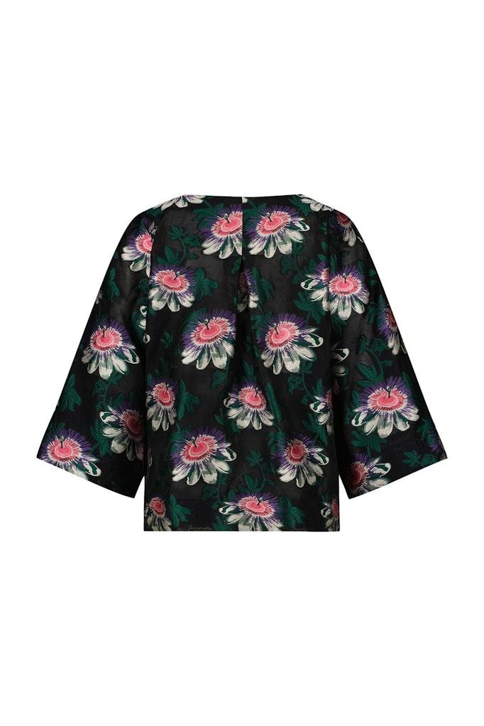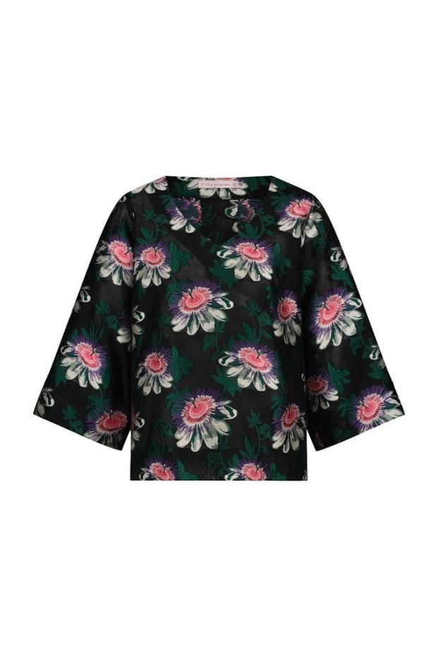 Studio Anneloes Arika sheer flower top 08379 9073 black/deep green