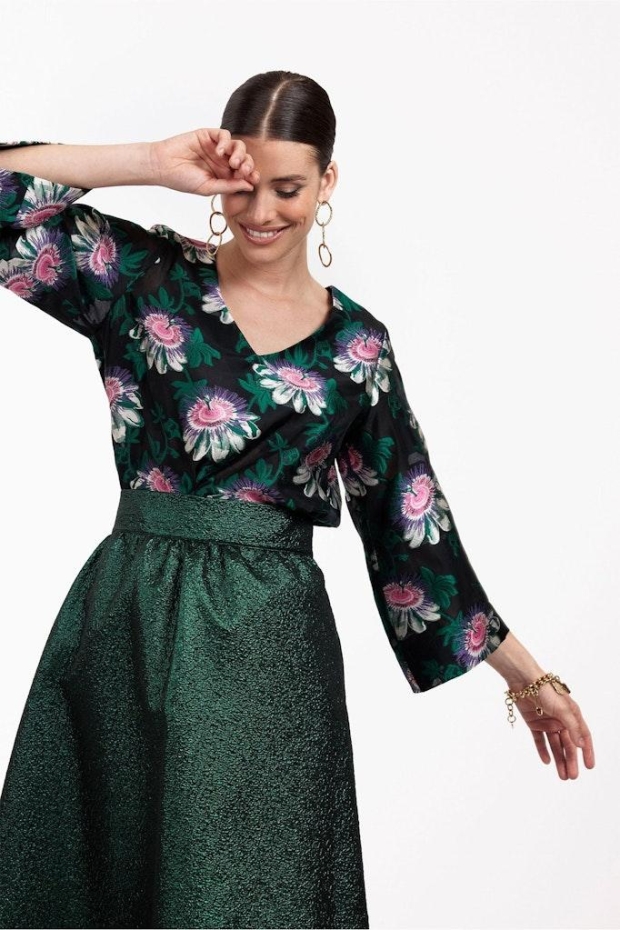 - Elegant zwart met diepgroene bloemenprint voor een unieke uitstraling.