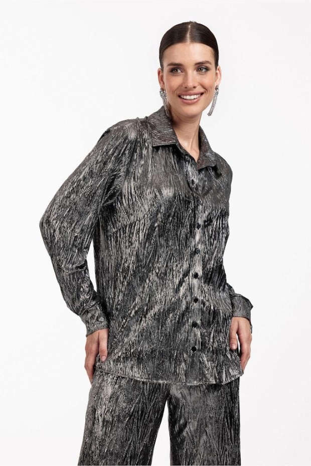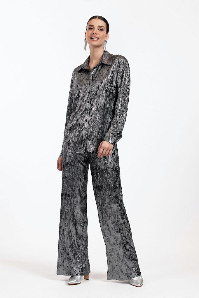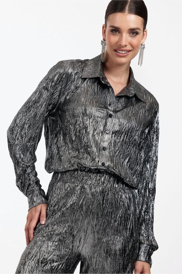 Ontdek de schitterende Bobby shiny plisse blouse van STUDIO ANNELOES, een ware toevoeging aan je wintergarderobe. Deze blouse straalt in een prachtige zilveren kleur, perfect om je outfit een sprankelende touch te geven tijdens de koudere maanden.