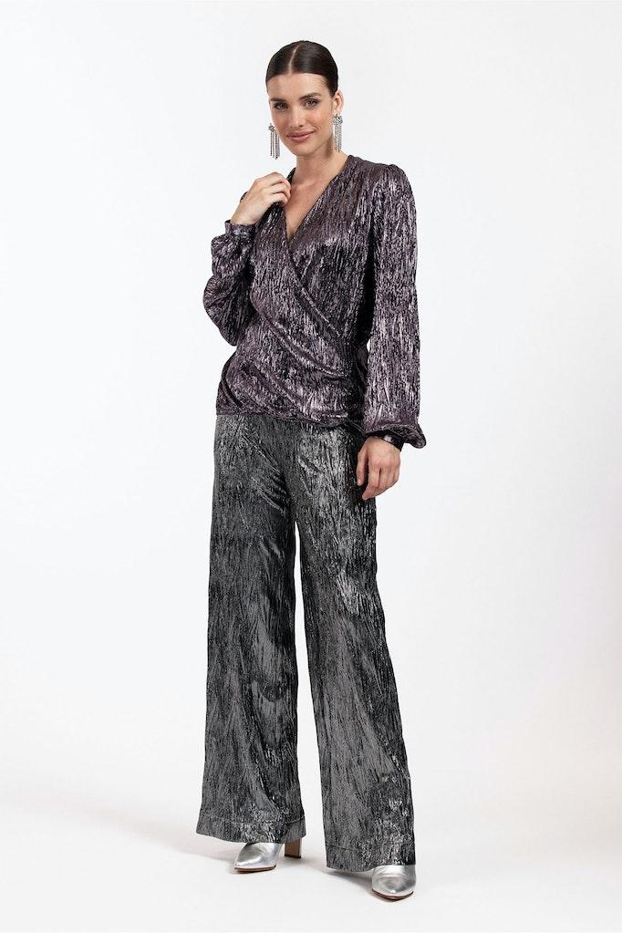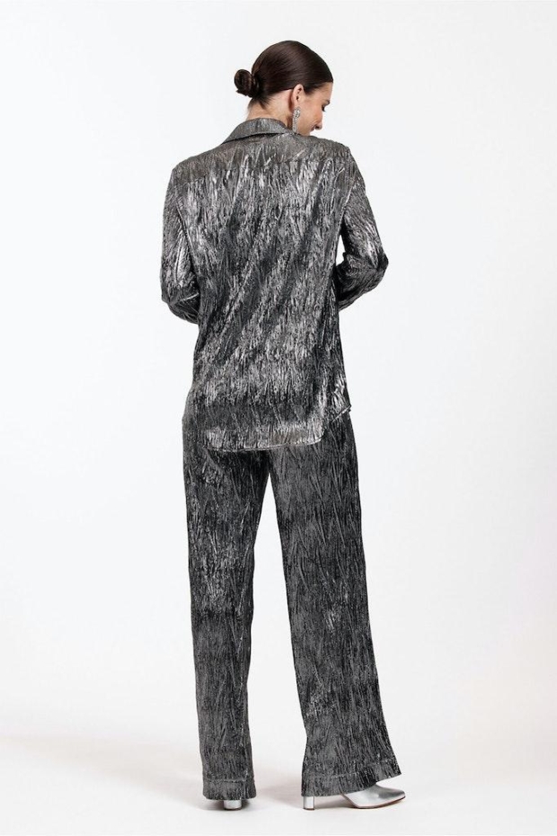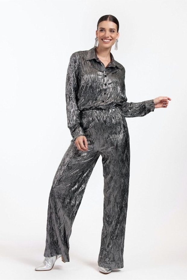 Studio Anneloes Frankie shiny plisse trousers 08385 0001 silver