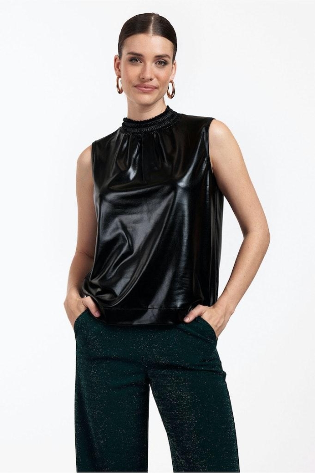 Ontdek de perfecte combinatie van stijl en comfort met de Martini metallic top van STUDIO ANNELOES. Deze top, uitgevoerd in een tijdloze zwarte kleur, is een must-have voor elke garderobe. Met zijn unieke metallic glans voegt het een vleugje glamour toe aan je dagelijkse look, ideaal voor zowel een avond uit als een casual dag.