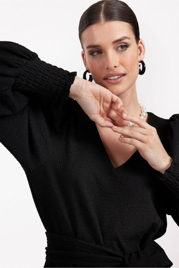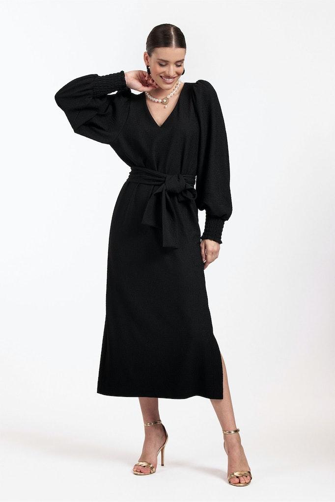 De Lisbon krinkle dress van Studio Anneloes is een middellange jurk met een bijpassende tailleriem voor een prachtige avondlook. Door de lange mouwen met elastische cuffs heeft de jurk een subtiele ballonmouw.