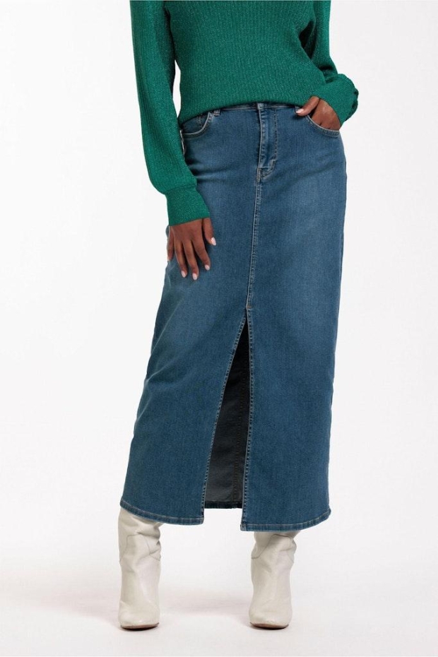 Ontdek de perfecte mix van comfort en stijl met de Annebella denim skirt van STUDIO ANNELOES. Deze prachtige rok in een tijdloze blauwe kleur is jouw nieuwe go-to item voor elke gelegenheid. Of je nu gaat voor een casual look of iets chiquers, met deze rok zit je altijd goed.