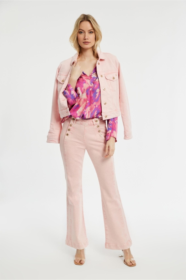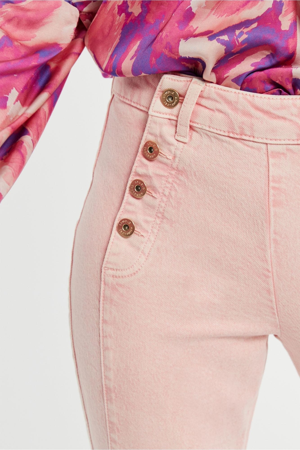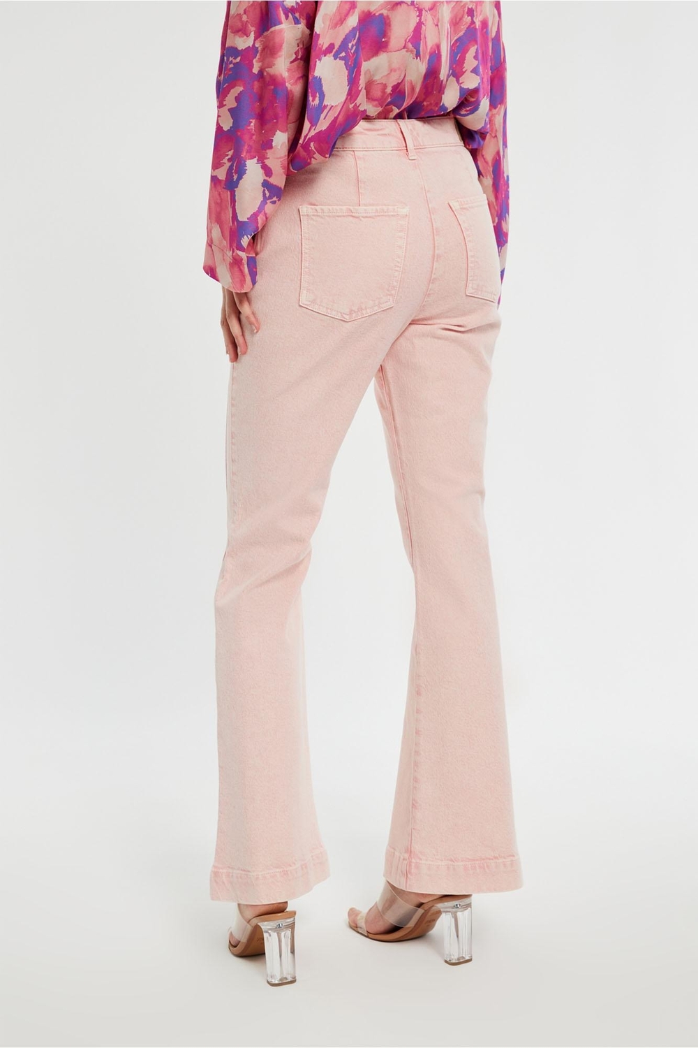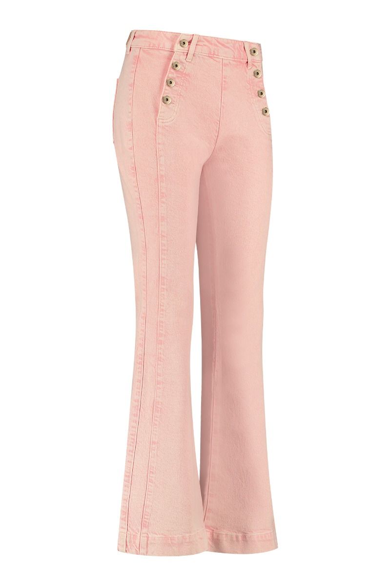 Ontdek de perfecte mix van stijl en comfort met de Sailor coloured jeans trousers van STUDIO ANNELOES. Deze prachtige lichtroze jeans, uitgevoerd in een flatterend flare model, zijn een must-have voor elke garderobe. Ze bieden een frisse en modieuze uitstraling die perfect is voor de zomer.