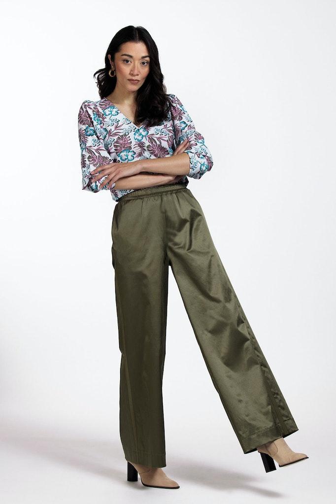 Ontdek de perfecte aanvulling op jouw zomerse garderobe met de Lucie satin trousers van STUDIO ANNELOES. Deze stijlvolle broek in de kleur ARMY is een must-have voor elke modebewuste vrouw die waarde hecht aan comfort en stijl. Laat je verleiden door het elegante design en de hoogwaardige afwerking die kenmerkend zijn voor STUDIO ANNELOES.