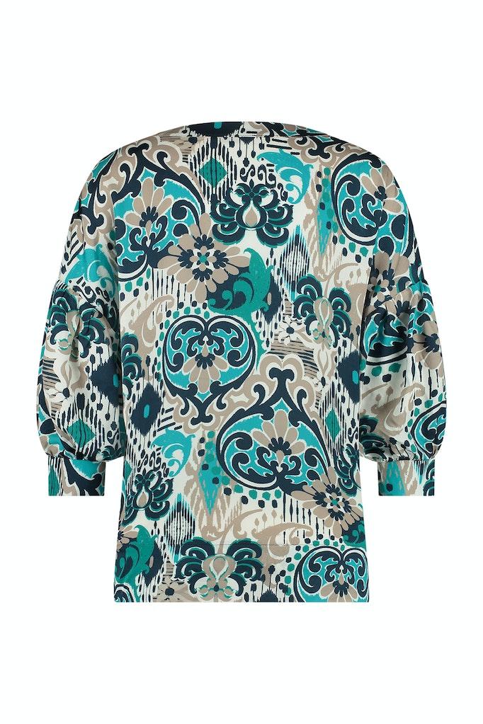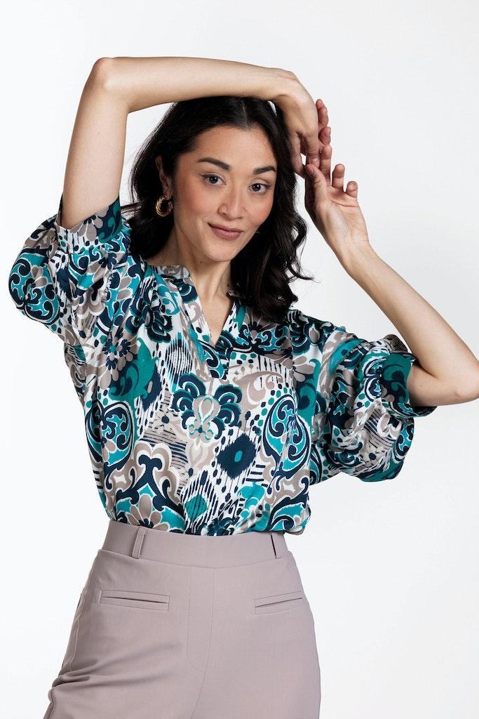 Studio Anneloes Lianne ornament big blouse 08589 1573 taupe/turquoise
