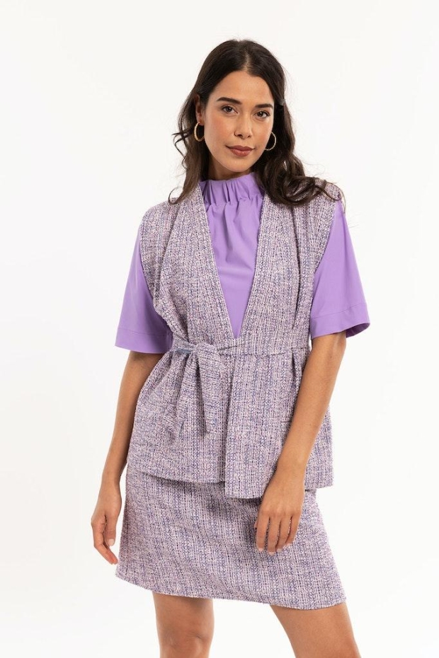 Ontdek de perfecte aanvulling op je zomergarderobe met de Maximo tweed skirt van STUDIO ANNELOES. Deze stijlvolle rok, uitgevoerd in een opvallende paarse kleur, is een ware blikvanger en belichaamt de perfecte mix van comfort en elegantie. Ideaal voor zowel een dag op kantoor als een avondje uit.