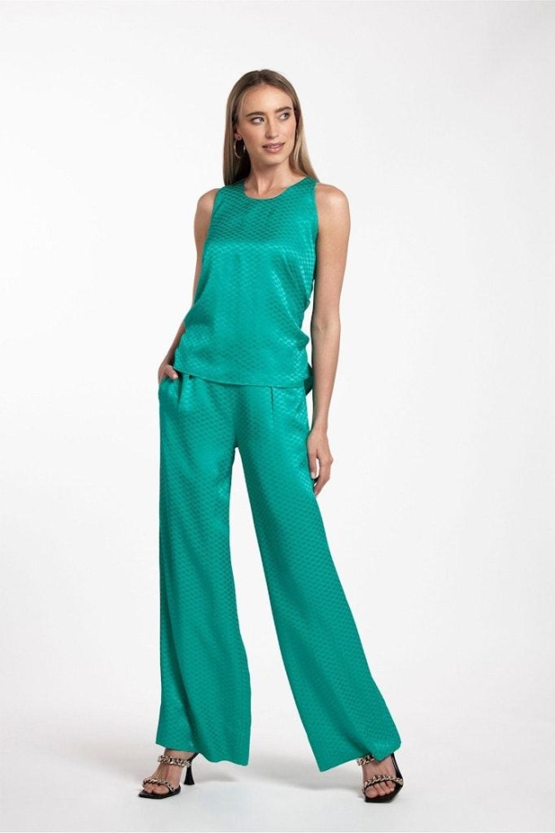 Studio Anneloes Jasmijn satin jacquard trousers 08723 7301 emerald