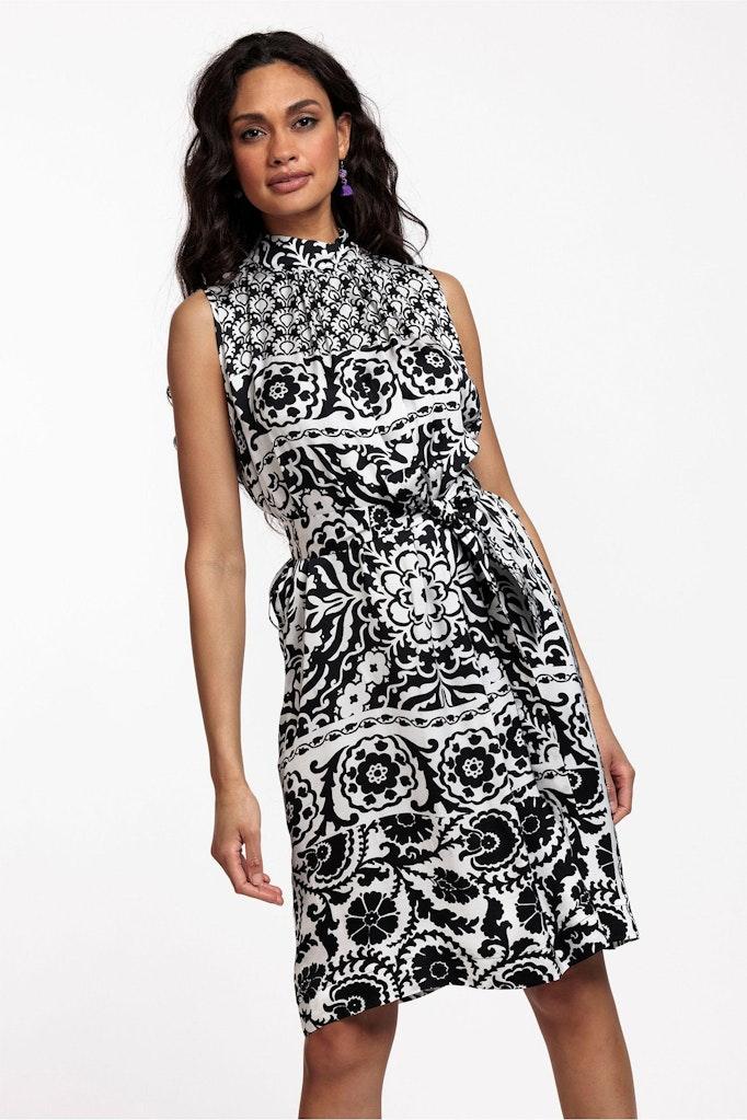 Ontdek de perfecte aanvulling op jouw zomerse garderobe met de Iza Satin Ornament Dress van STUDIO ANNELOES. Deze prachtige jurk, uitgevoerd in een stijlvol wit met zwart ornament design, belichaamt elegantie en comfort. Ideaal voor zowel een casual dagje uit als een chique avondgelegenheid.