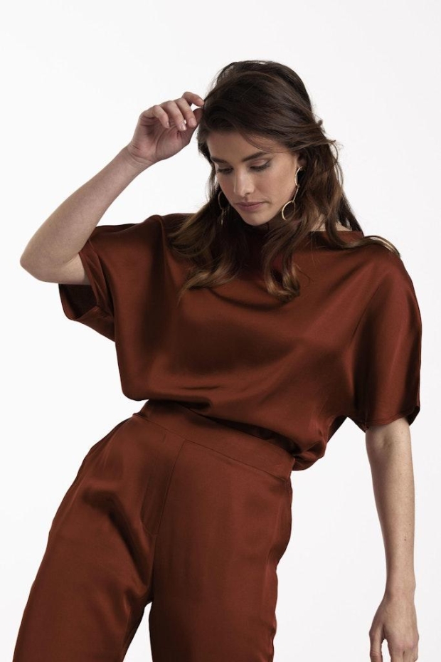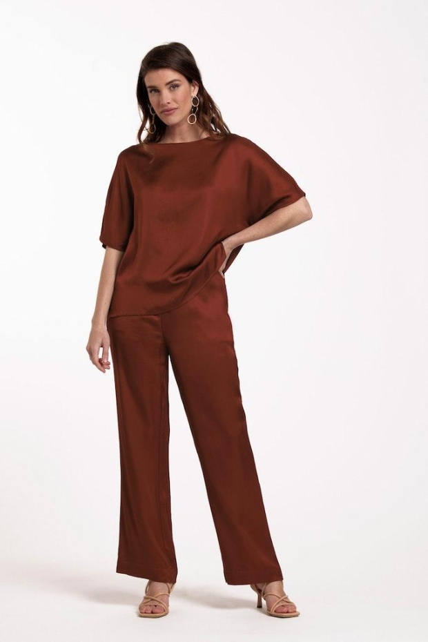 Ontdek de perfecte combinatie van stijl en comfort met de Daphine satin trousers van STUDIO ANNELOES. Deze elegante broek, uitgevoerd in een prachtige bruine tint, is een must-have voor elke garderobe. Met zijn tijdloze design en hoogwaardige afwerking is deze broek ideaal voor zowel een casual dagje uit als een chique avondgelegenheid.