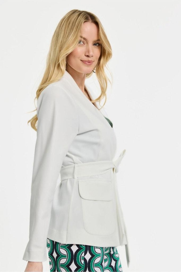 De Sandy bonded blazer van Studio Anneloes is een prachtig jasje van stevige travelstof. Het is een blazer met overslag. Benadruk je taille met de bijpassende knoopceintuur.