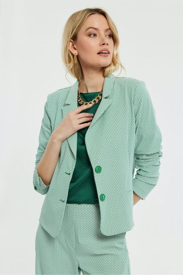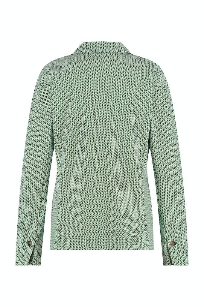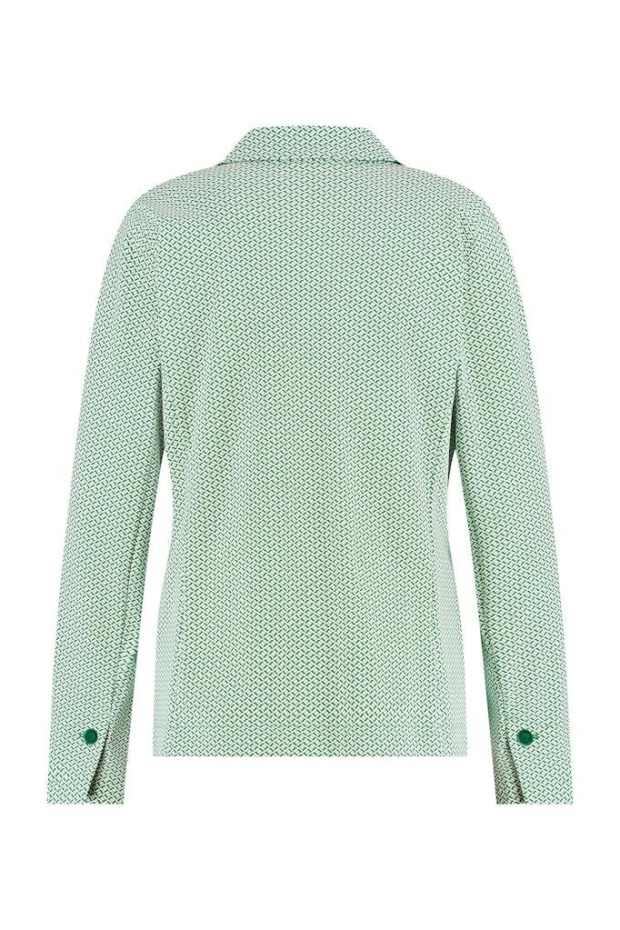 Ontdek de perfecte toevoeging aan je zomergarderobe met de elegante Emi maze blazer van STUDIO ANNELOES. Deze stijlvolle blazer, uitgevoerd in een frisse off white kleur met subtiele groene accenten, is de ideale keuze voor elke dame die waarde hecht aan klasse en comfort.