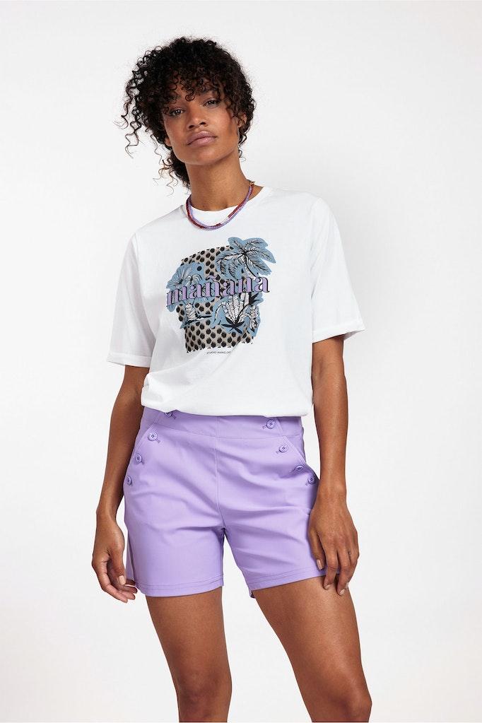 Maak je klaar voor de zomer met de Rome shorts van Studio Anneloes. Deze lila korte broek herken je aan de sierlijke knoopjes bij de steekzakken.