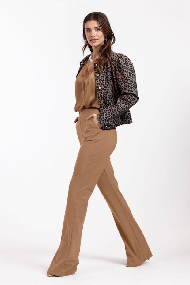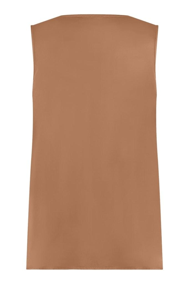 - Elegante satin top in de kleur camel, perfect voor elke gelegenheid.