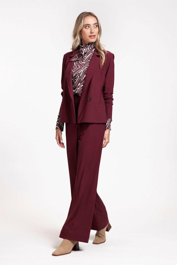 Ervaar de perfecte combinatie van stijl en comfort met de Sensa bonded blazer van STUDIO ANNELOES. Deze prachtige blazer in een rijke bordeaux tint is de ideale aanvulling op je wintergarderobe, waarmee je moeiteloos een statement maakt op kantoor of tijdens een avondje uit.