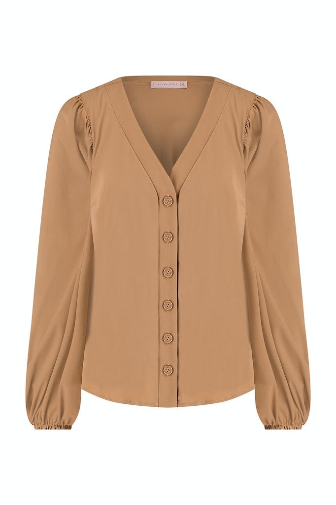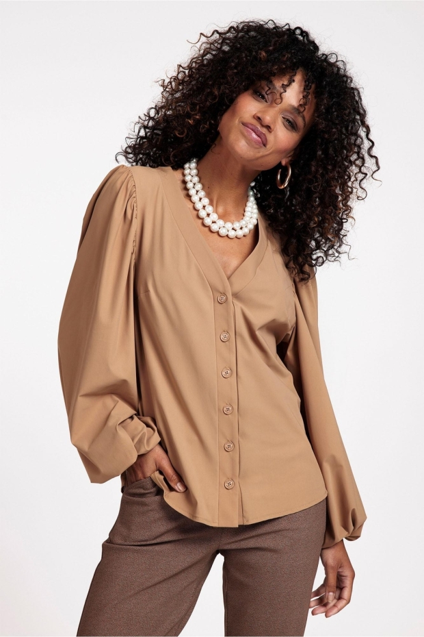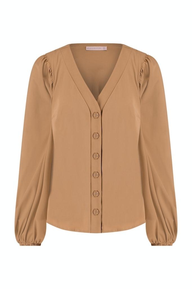 Maak kennis met de elegante Carmilla blouse van STUDIO ANNELOES, een ware toevoeging aan je wintergarderobe. Deze blouse, uitgevoerd in een stijlvolle camel kleur, belooft niet alleen comfort maar ook een tijdloze uitstraling die je moeiteloos kunt combineren met je favoriete kledingstukken.