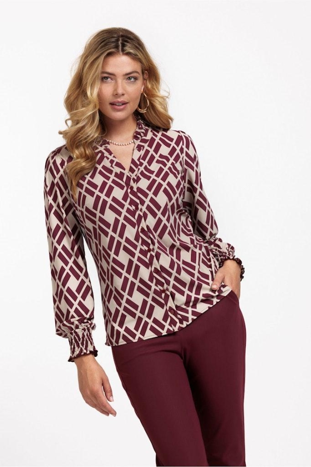 De Sammie wyber blouse van Studio Anneloes heeft een klassieke, tijdloze look. Deze blouse kun je mooi combineren met de kleuren cappuccino en bordo (bordeaux) voor een gecoördineerde look.