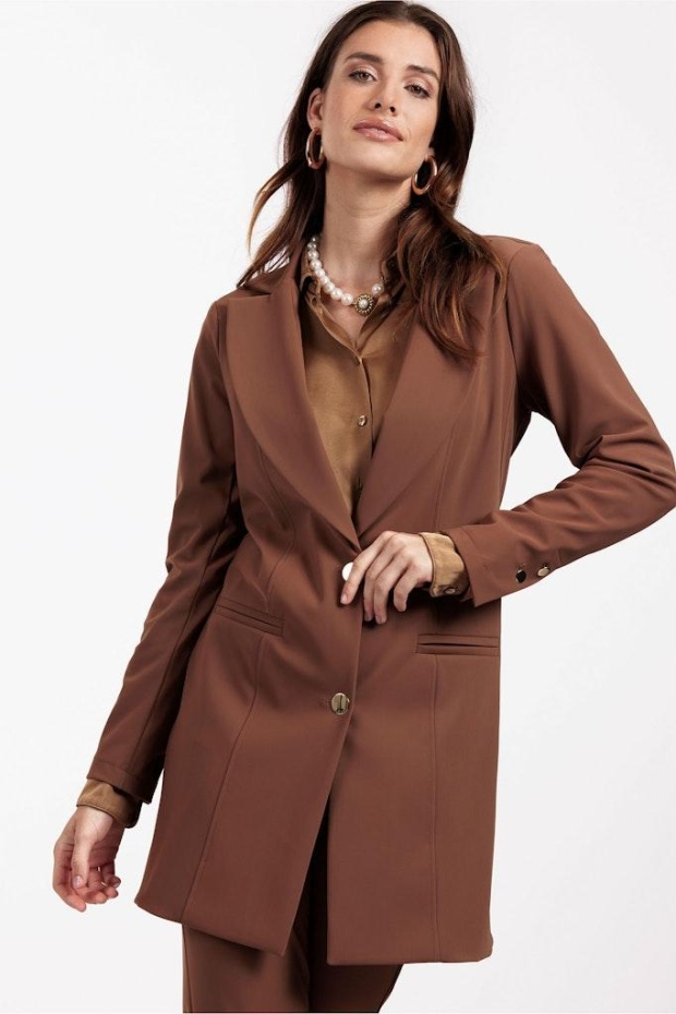 Ontdek de perfecte aanvulling op jouw garderobe met de Jazmin bonded blazer van STUDIO ANNELOES. Deze stijlvolle blazer in de kleur bronze is jouw nieuwe must-have voor het winterseizoen. Met zijn elegante uitstraling en veelzijdigheid is deze blazer ideaal voor zowel formele als casual gelegenheden.