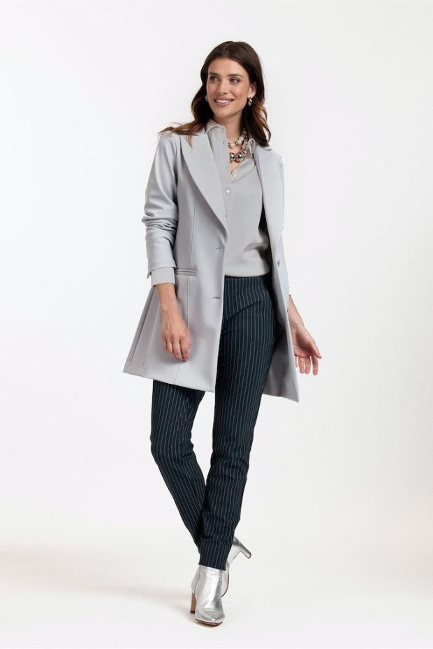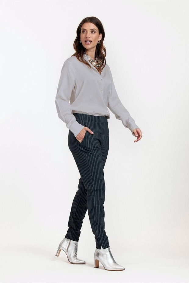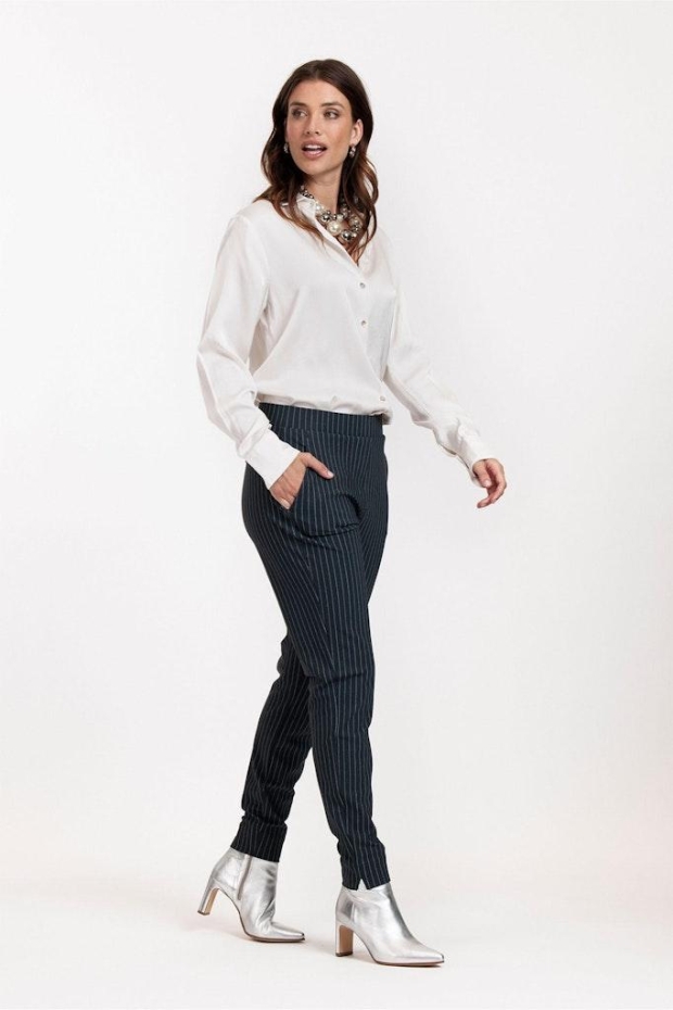 Studio Anneloes Alistar bonded pinstripe trousers 09168 9891 antraciet/light grey