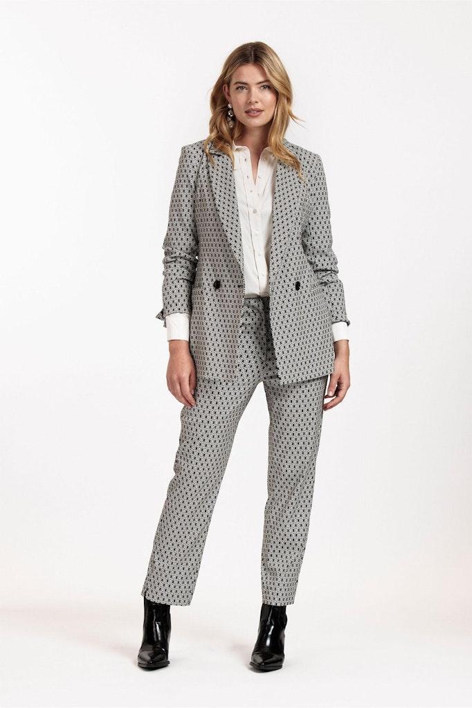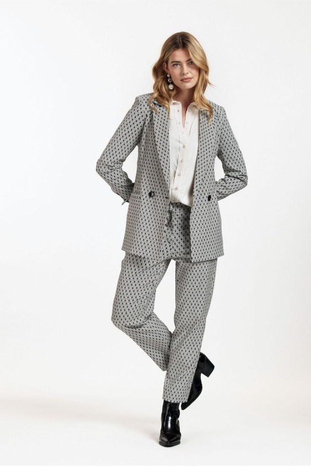 Ontdek de elegante charme van de Mira ornmt jacquard trousers van STUDIO ANNELOES, perfect voor de modebewuste vrouw die waarde hecht aan comfort en stijl. Deze prachtige broek, uitgevoerd in een tijdloze zwart met off-white kleurencombinatie, is jouw ideale partner voor zowel formele als informele gelegenheden tijdens de wintermaanden.