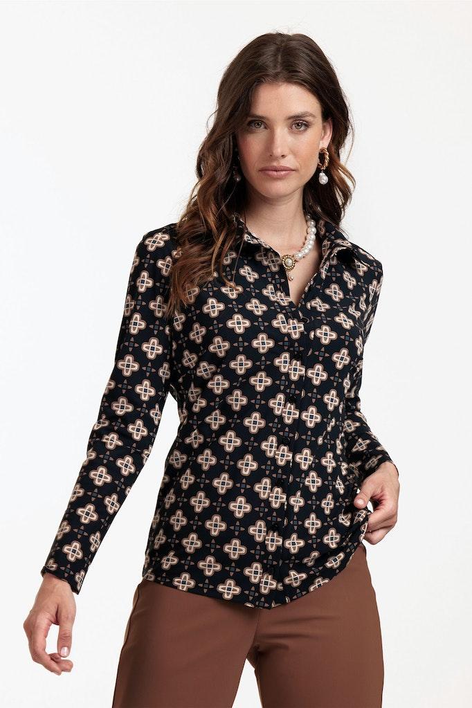 Ontdek de stijlvolle elegantie van de Poppy clover shirt van STUDIO ANNELOES, perfect voor de modebewuste vrouw die waarde hecht aan kwaliteit en stijl. Deze prachtige blouse in de kleur zwart, verrijkt met een vleugje cinnamon, is jouw ideale partner voor elke gelegenheid deze winter.