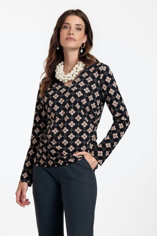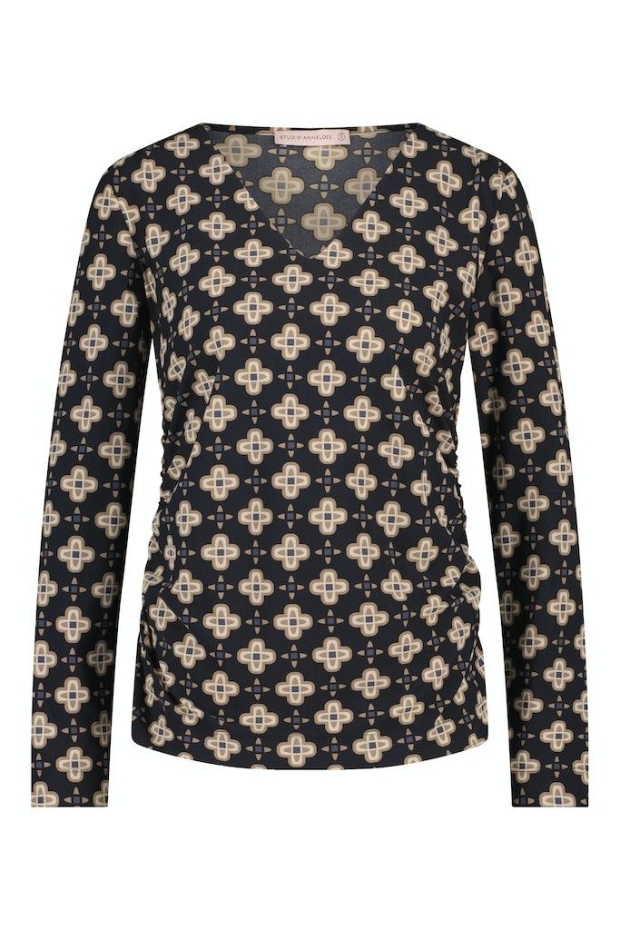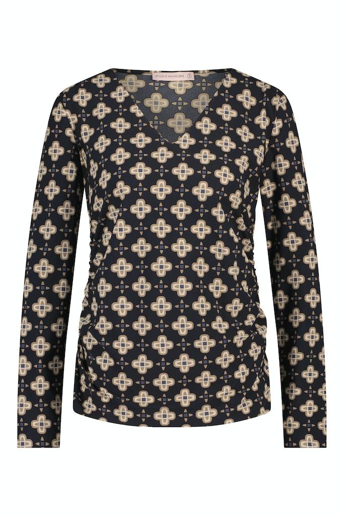 Ontdek de perfecte aanvulling op je wintergarderobe met het Rezy clover shirt van STUDIO ANNELOES. Dit stijlvolle T-shirt met lange mouwen, uitgevoerd in een klassieke zwarte kleur met een vleugje cinnamon, biedt een combinatie van comfort en elegantie die je look naar een hoger niveau tilt.