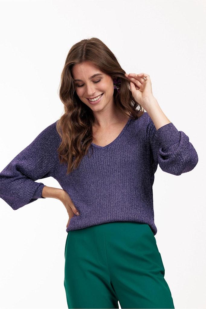 Laat je betoveren door de schittering van de Tanya ls lurex pullover van STUDIO ANNELOES. Deze prachtige trui in een diepe paarse tint is jouw nieuwe favoriet voor de wintermaanden. Met zijn subtiele glans en comfortabele pasvorm is dit stuk een must-have voor elke garderobe.