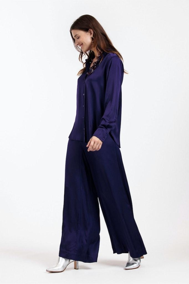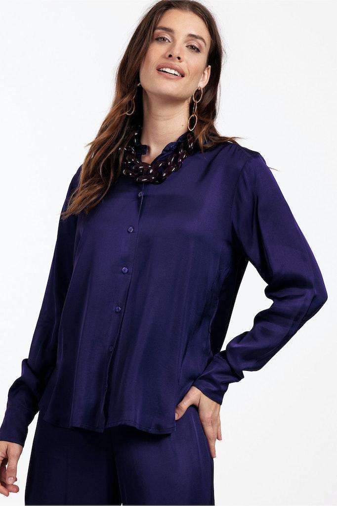 Ervaar de elegantie van de Bibby satin blouse van STUDIO ANNELOES. Deze prachtige blouse, uitgevoerd in een diepe paarse tint, belichaamt vrouwelijkheid en stijl, perfect voor elke gelegenheid in de wintermaanden. Met zijn unieke ontwerp en comfortabele pasvorm zal deze blouse snel een favoriet worden in je garderobe.