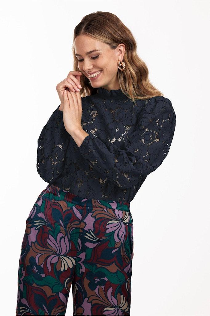 Ontdek de charme van de Lavina lace top van STUDIO ANNELOES, een stijlvolle toevoeging aan je garderobe die perfect is voor de winter. Uitgevoerd in een elegante donkerblauwe kleur, biedt deze top met lange mouwen een combinatie van comfort en stijl voor elke gelegenheid.