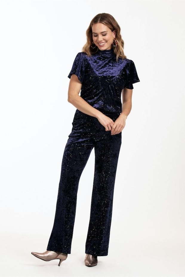 Ontdek de perfecte combinatie van stijl en comfort met de Fey lurex broek van STUDIO ANNELOES. Deze prachtige broek in een diepe paarse kleur is jouw nieuwe must-have voor de winter. Of je nu een dag op kantoor hebt of een avondje uit, met deze broek steel je gegarandeerd de show.