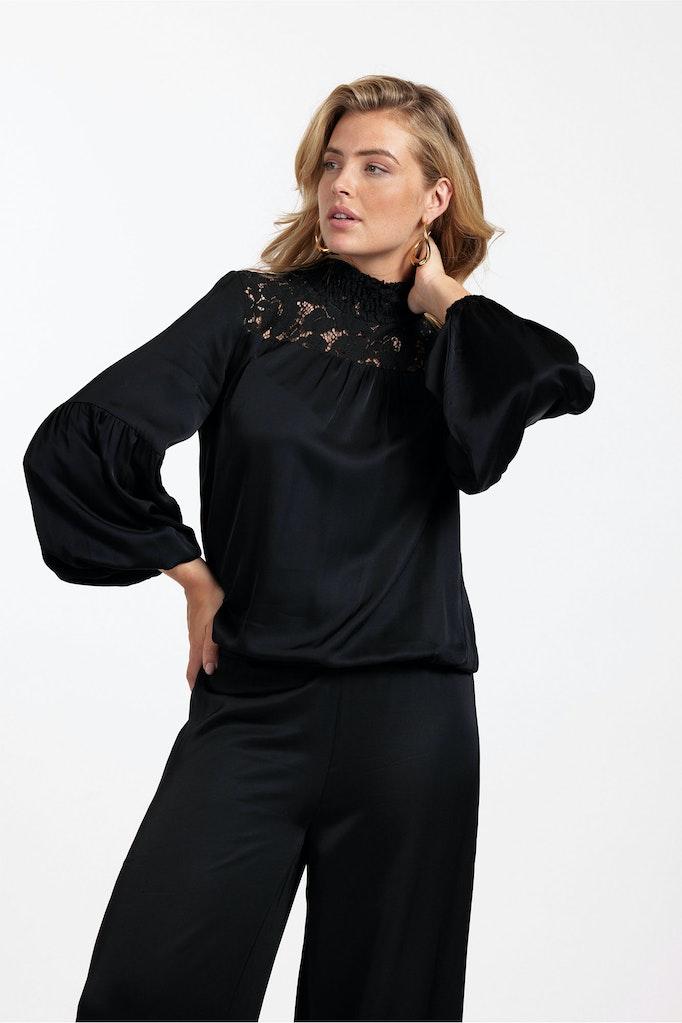 Ontdek de elegante charme van de Charlotte satin lace top van STUDIO ANNELOES, perfect voor elke dame die stijl en comfort waardeert. Deze prachtige top in tijdloos zwart is een veelzijdige toevoeging aan je garderobe, ideaal voor zowel casual als chique gelegenheden in de wintermaanden.