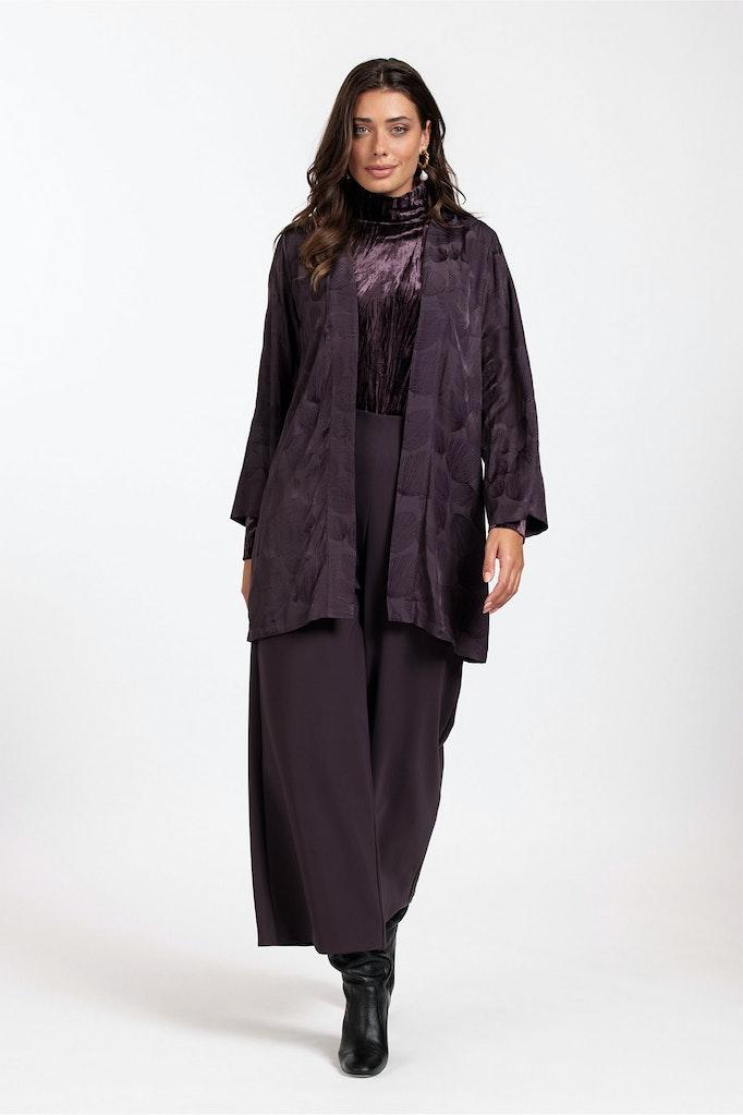 Ontdek de perfecte aanvulling op jouw garderobe met de Kara jacquard kimono van STUDIO ANNELOES. Deze stijlvolle kimono in de prachtige kleur aubergine is niet alleen een lust voor het oog, maar ook heerlijk comfortabel. Ideaal voor de wintermaanden, deze kimono met lange mouwen houdt je warm en modieus tegelijk.